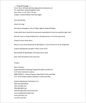 I want to take the time to let you know that Dave Hardin and crew is doing a awesome job for Quality Mechanical!