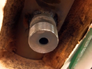 The valve is opened and the Thermowell Housing is pushed past the valve and threaded into the inside thread of the Thermowell fitting.