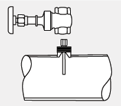 When properly installed, the pressure is sealed off by the Thermowell Housing and the temporary valve can be removed. A wide variety of thermowell housings can be installed into any type of piping. In this particular case, the piping is steel and the Thermowell fitting is welded to the pipe. With non-weldable pipe a bolt-on saddle may be supplied.